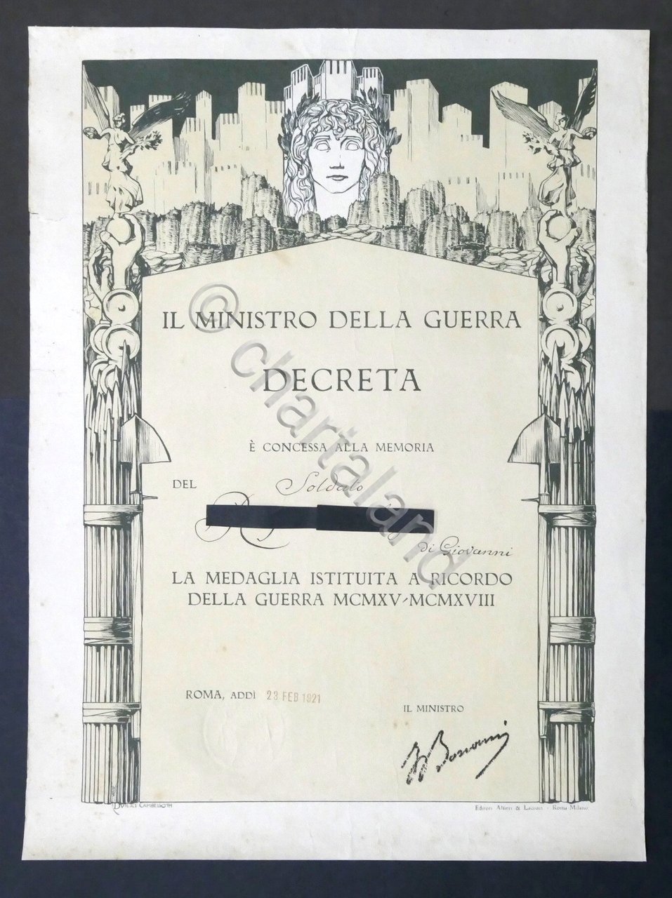 WWI Decreto concessione medaglia ricordo della guerra 1915-1918 - Febbraio 1921 | Libri antichi e moderni |