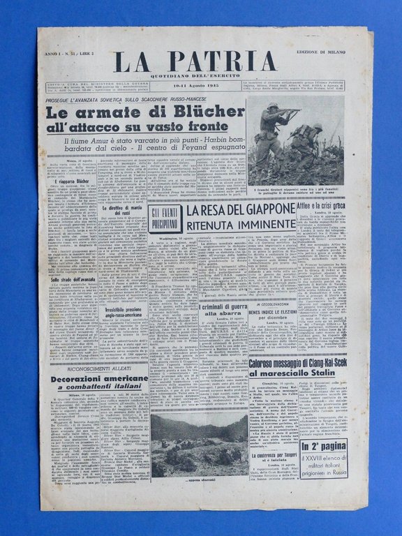 WWII Giornale - La Patria - Quotidiano per l'Esercito - Anno I - N° 51 - 1945