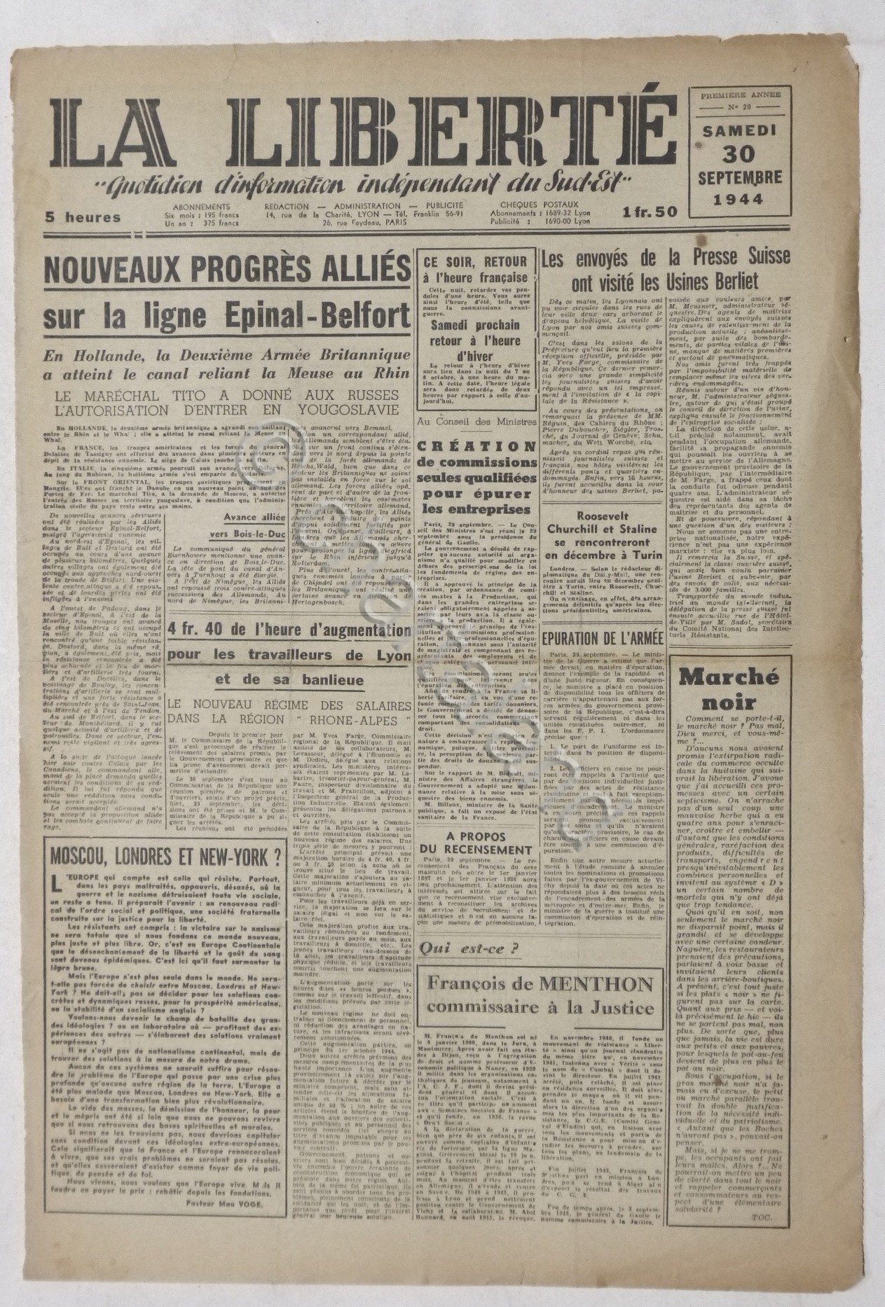WWII Giornale Francia - La Liberté, - N. 20 - 30 settembre 1944
