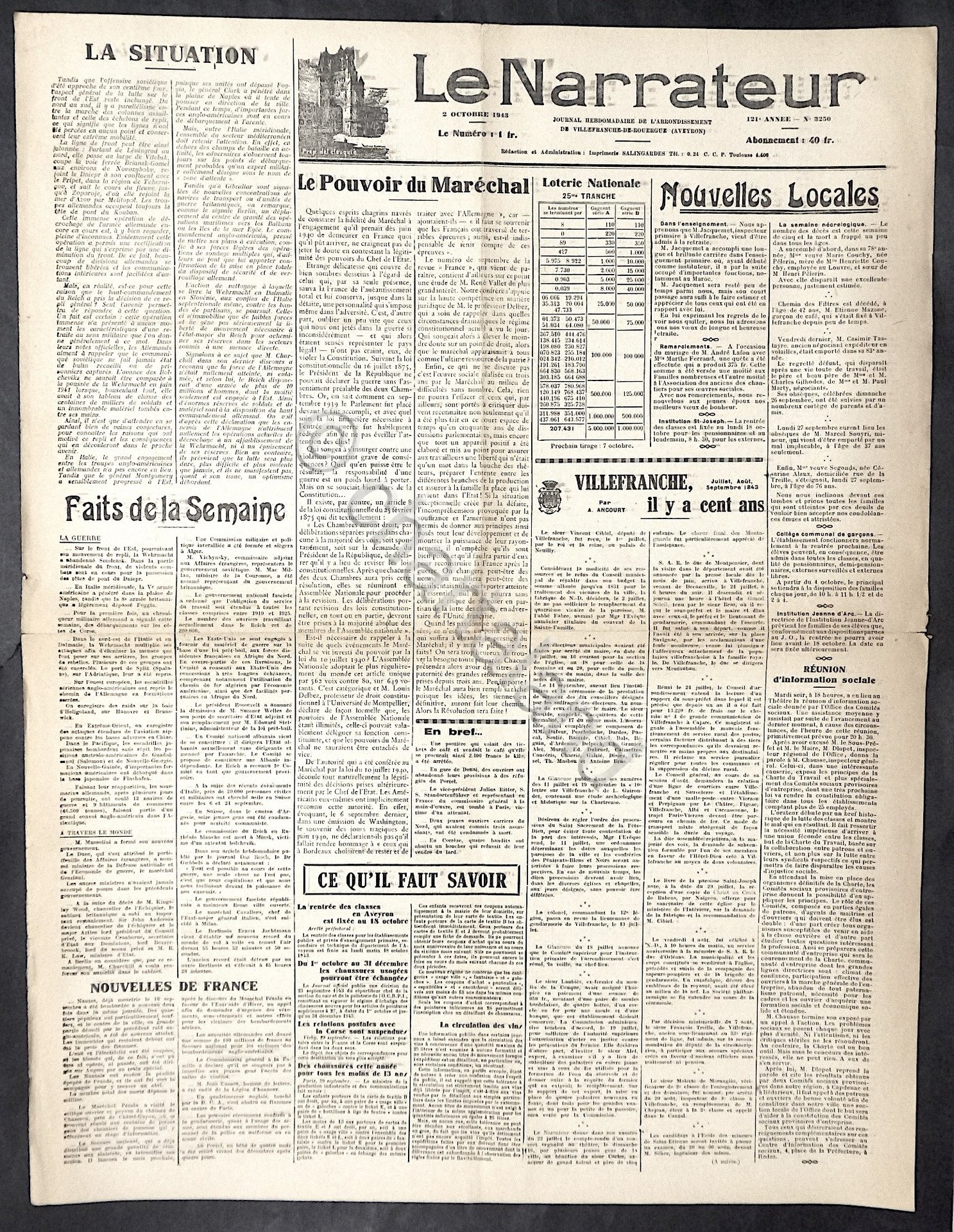 WWII Giornale Francia - Le Narrateur - N. 3250 - 2 ottobre 1943