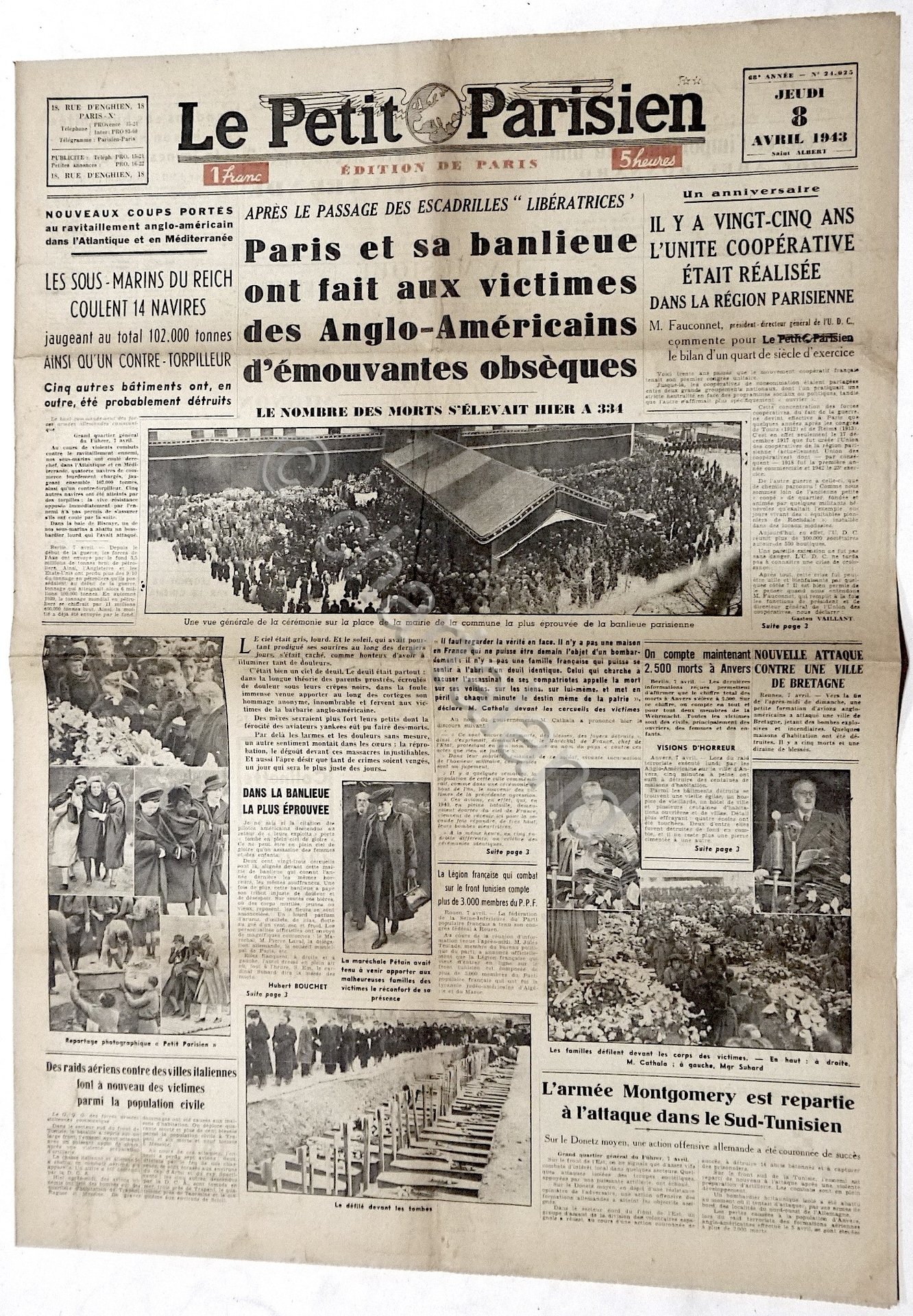WWII Giornale Francia - Le Petit Parisien - N. 24025 - 8 aprile 1943 | Libri antichi e moderni |