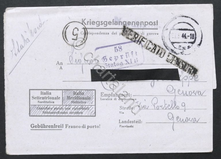 WWII Lettera da Prigioniero di Guerra italiano - Wietzendorf - Germania 1944
