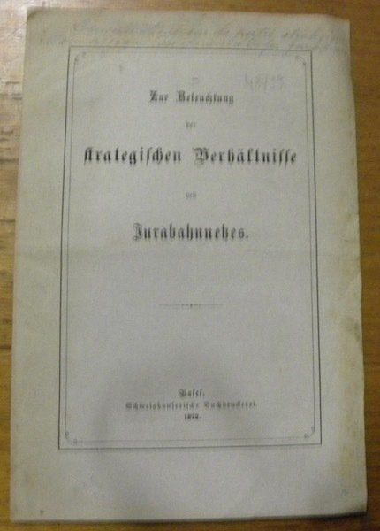 Zur Beleuchtung der strategischen Verhältnisse des Jurabahnnesses. | Libri antichi e moderni |