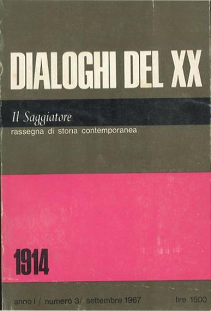 254 p. ; 21 x 15 cm. Numero monografico dedicato alla Prima Guerra mondiale della rivista «Dialoghi del XX: rassegna di storia contemporanea» (a. 1, n. 3, settembre 1967). Direttore resp.:Alberto Mondadori. Interventi e saggi di: Charles A. Fisher, Jonathan Steinberg; Wolfgang J. Mommsen; Imanuel Geiss; I.V. Bastuzev; Christopher Andrew; Norman stone, Klaus Epstein, Alberto Monticone . Brossura editoriale, coperta in cartoncino flessibile colorato e plastificato lucido. Codice libreria 7404.