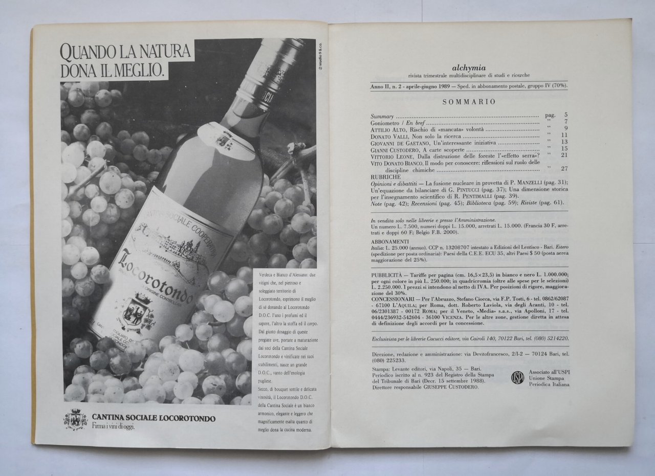 ALCHYMIA anno II Numero 2, aprile-giugno 1989. Rivista trimestrale multidisciplinare di studi e ricerche.