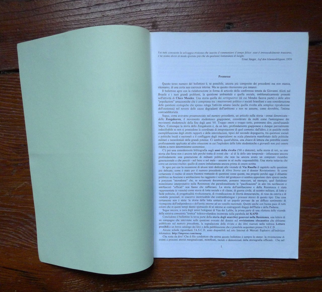 ALTRA STORIA NOV.1997,Archivio Storico Genova Pegli[Chico Mendes,Zengakuren,KAPD