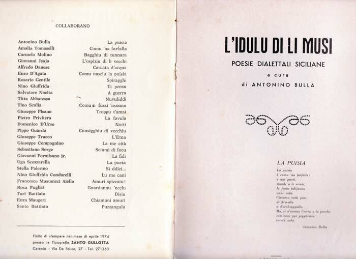 Antonino Bulla,POESIE DIALETTALI SICILIANE,Catania 1975[poesia popolare,Sicilia