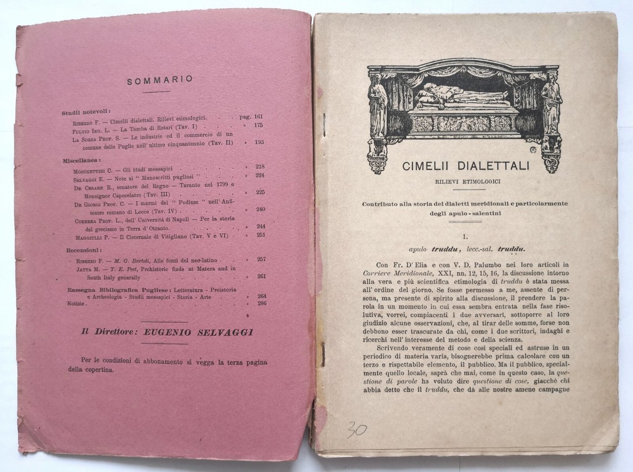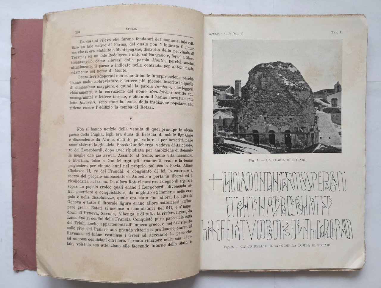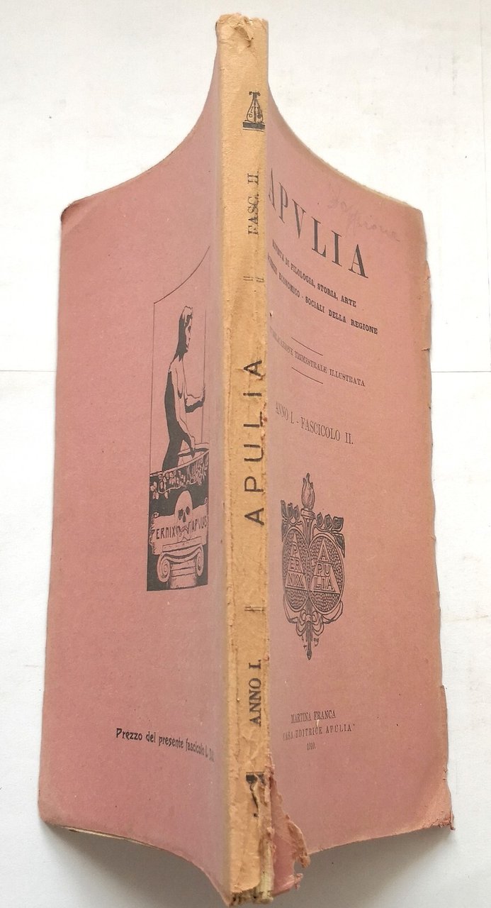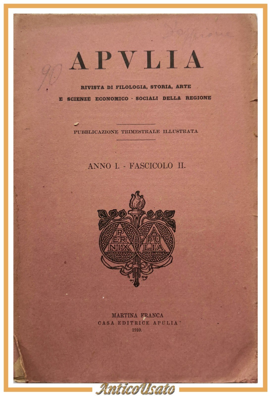 Martina Franca, Casa Editrice Apulia, 1910. Anno I. fascicolo II. 128 pagine (da 161 a 288), tavole in bianco e nero fuori testo. Copertina editoriale in brossura. Stato di conservazione: molto buono (pagine normalmente ingiallite, copertina un po' sciupata) Libro usato saggistica storia locale Puglia
