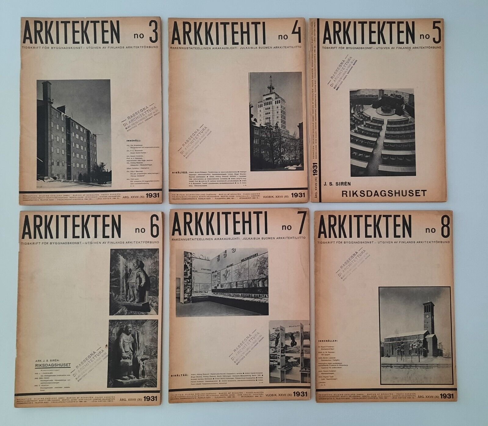 ARKITEKTEN TIDSKRIFT FOR BYGGNADSKONST ARCHIETTURA ANNO 1931 N. 3-4-5-6-7-8