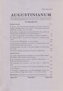 316 pagine. Brossura. Augustinianum, LIX. Commento dell'editore: Fondata nel 1961, è la pubblicazione periodica curata dai professori dell'Istituto Patristico della Pontificia Università Lateranense. Offre contributi di ricerca relativi alla conoscenza della letteratura cristiana antica e del pensiero dei Padri della Chiesa.