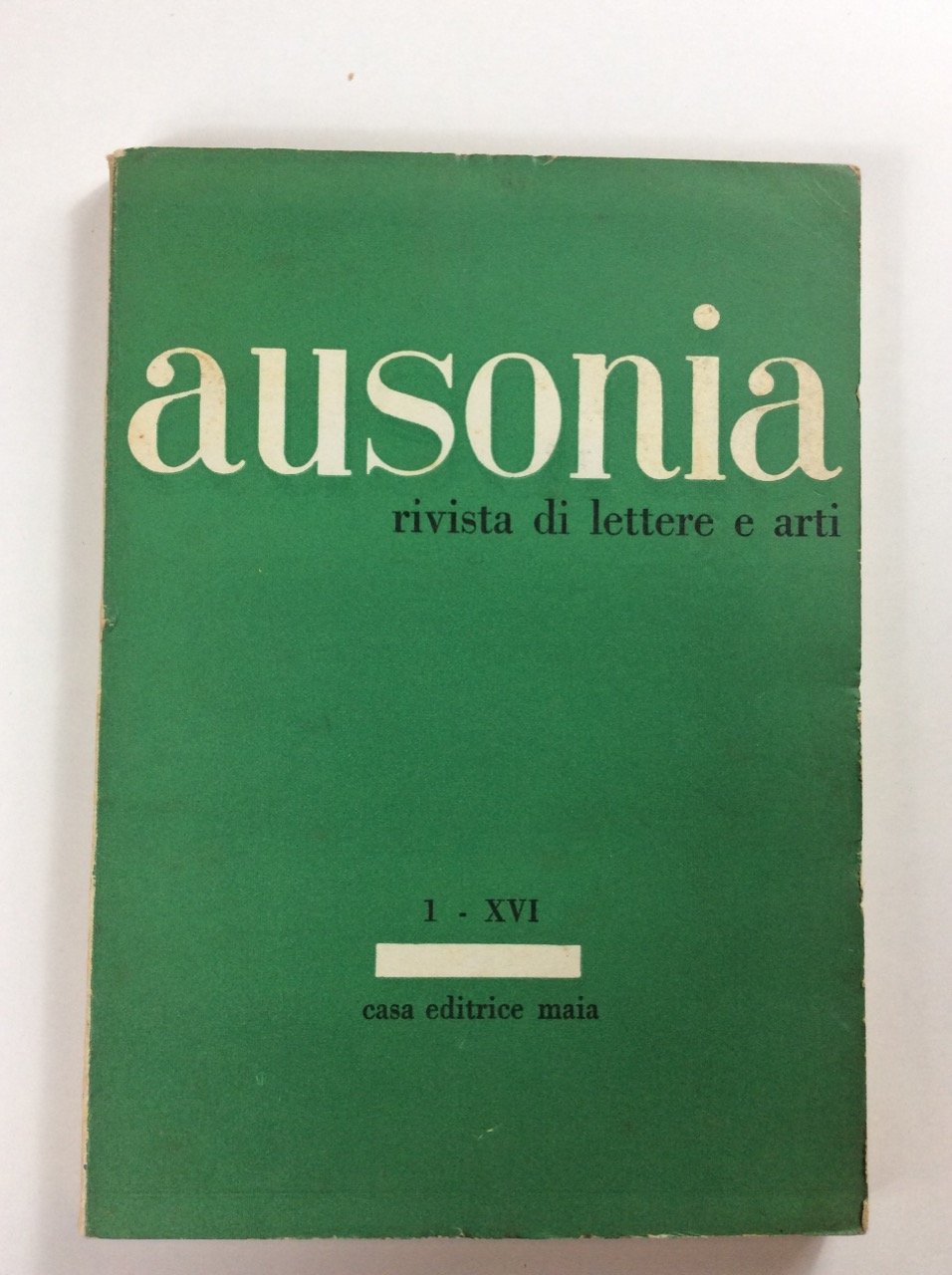 In-8, bross., fascicoli di ca. 80 pp. cad. Di questa rivista bimestrale offriamo un lotto di 15 fascicoli, così composto: 1954 (Anno IX), n. 3 (maggio-giugno) // 1955, nn. 5 e 6 // 1957, nn. 1, 2, 3, 4 // 1958, nn. 5 e 6 // 1959, nn. 1 e 5 // 1960, nn. 2, 3 e 5 // 1961, n. 1. Ben conservati. Fondata a Siena nel 1946 da Fiorentino, "Ausonia" è, fra le riviste "provinciali", una delle più continue e presenti nella nostra cultura. Pubblica versi di poeti antichi e stranieri, varie traduzioni, poesie di giovani autori, saggi critici su scrittori classici e contemporanei. Cosi' Diz. Vallecchi,I, p. 68.