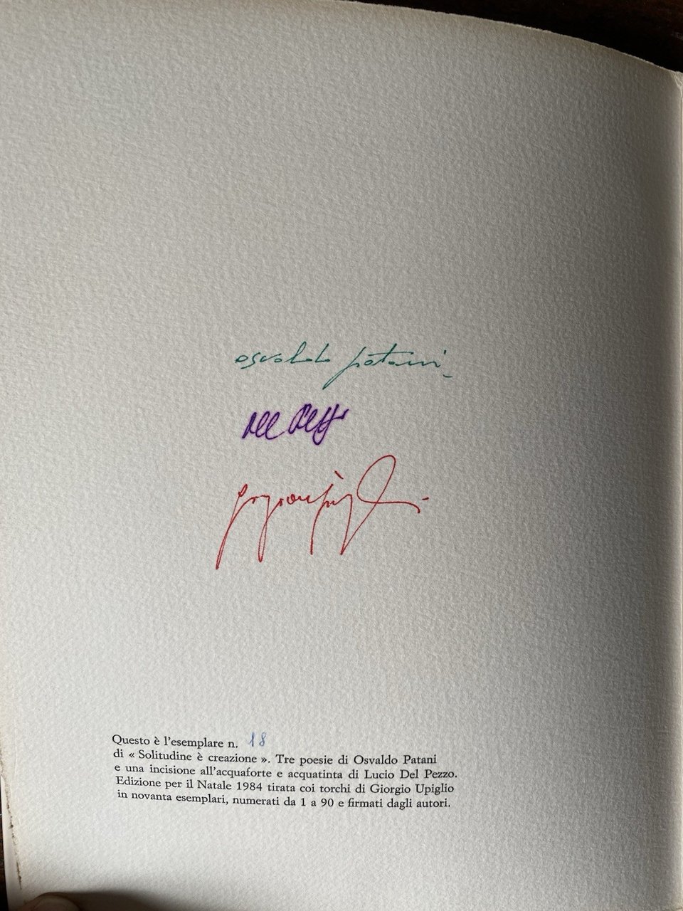 Autografato Patani Osvaldo Del Pezzo Lucio Solitudine è creazione Upiglio 1984