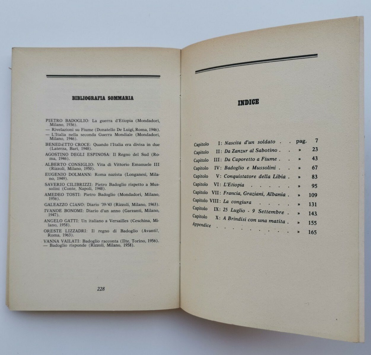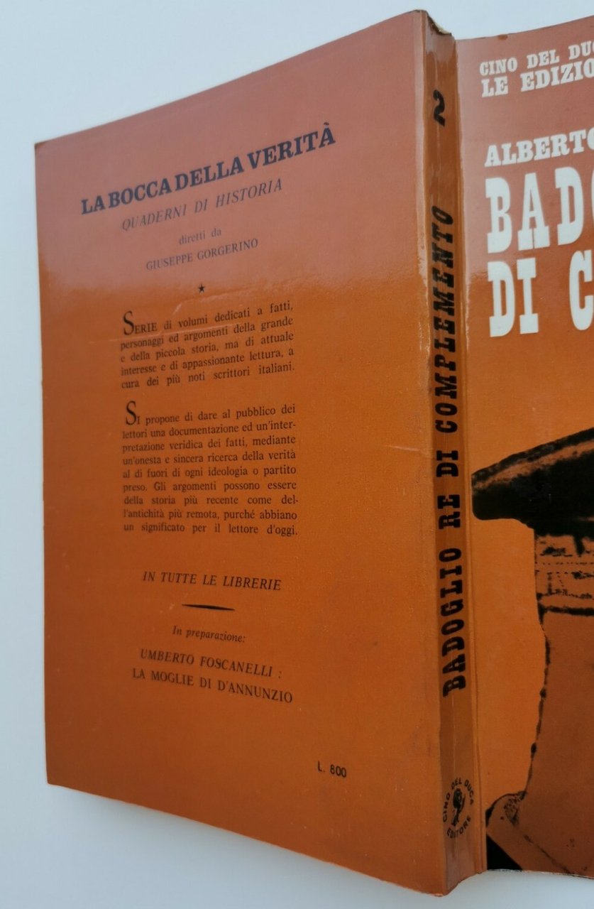 BADOGLIO RE DI COMPLEMENTO di Alberto Consiglio. Cino Del Duca, le edizioni mondiali, 1964. 228 pagine, fotografie in bianco e nero fuori testo. Copertina editoriale in brossura. Stato di conservazione: molto buono (pagine normalmente ingiallite, piccole imperfezioni alla copertina)