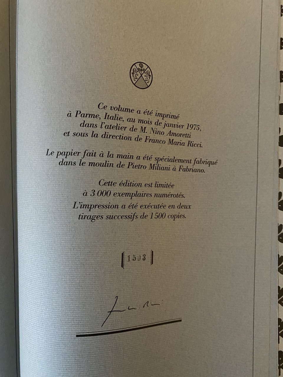 In 4° legatura editoriale pp. 190 I° edizione Testo in francese Tavole applicate a colori Tiratura di 300 esemplari numerati Esemplare numero 1503