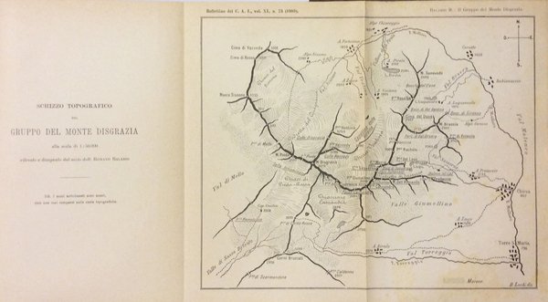 In-8 gr., brossura orig. (fiorit.), pp. XXXIX,327 + XLVIII di Indice generale alfabetico delle dieci annate (1894-1903) (volumi XXVIII-XXXVI) del Bollettino del C.A.I. compilato da Federico Federici, con 73 illustrazioni fotografiche in bianco e nero, ritratti, ricordi, carte, schizzi, disegni, ecc., nel testo ed 1 schizzo topografico del Gruppo del Disgrazia. Testo ben conservato.