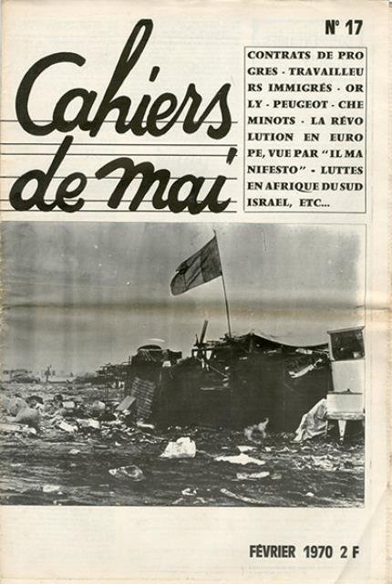 8 fasc. : ill. ; 30 x 22 cm. Les Cahiers de Mai sont une revue créée immédiatement après les événements de Mai 68 et publiée jusqu'en 1973. Ce bi-hebdomadaire a popularisé le reportage social, juste après Mai 68. L'objectif de la publication est d'établir des liaisons entre les groupes ouvriers révolutionnaires qui existent, de manière plus ou moins constituée, après mai 1968, dans de nombreuses entreprises. Directeur de la publication: Daniel Anselme. N. 17 (fév. 1970); n. 18 (mars 1970); n. 19 (avr. 1970); n. 20 (mai. 1970); n. 21 (juin 1970); n. 22 (jui. 1970); n. 23 (sep. 1970); nn. 24-25 (nov.-déc. 1970). Fascicoli piegati e illustrati, stampati su varie tipi di carta e formati. Codice libreria 6859.