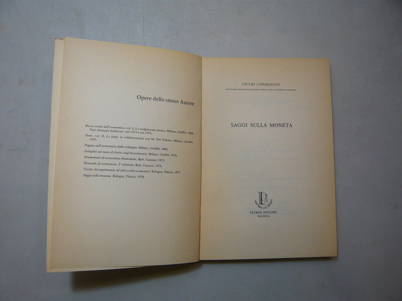 Capodaglio, SAGGI SULLA MONETA, Pàtron Editore, Bologna, 1978