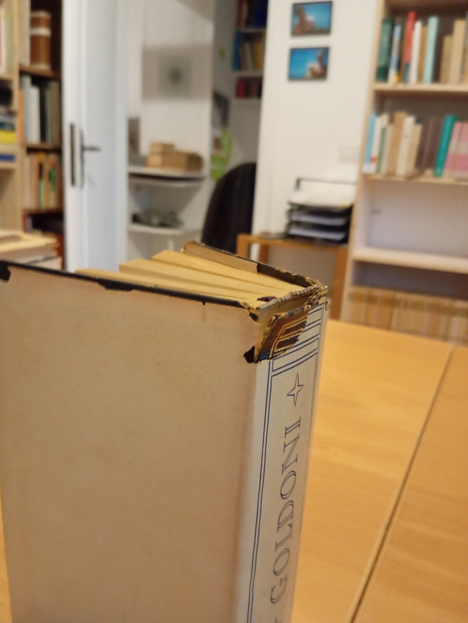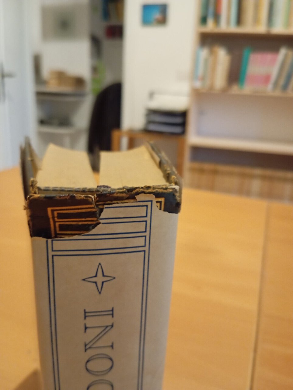 Sovracopertina con alcuni strappi e segni di usura, come da foto. Copertina rigida con ammaccatura nella parte superiore del dorso, come da foto