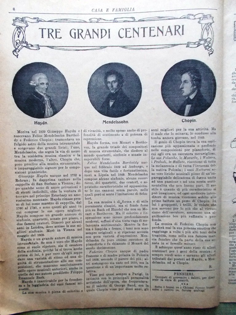 Casa e Famiglia del 14 Marzo 1909 Haydn Mendelssohn Chopin Orologio Val Tibolle