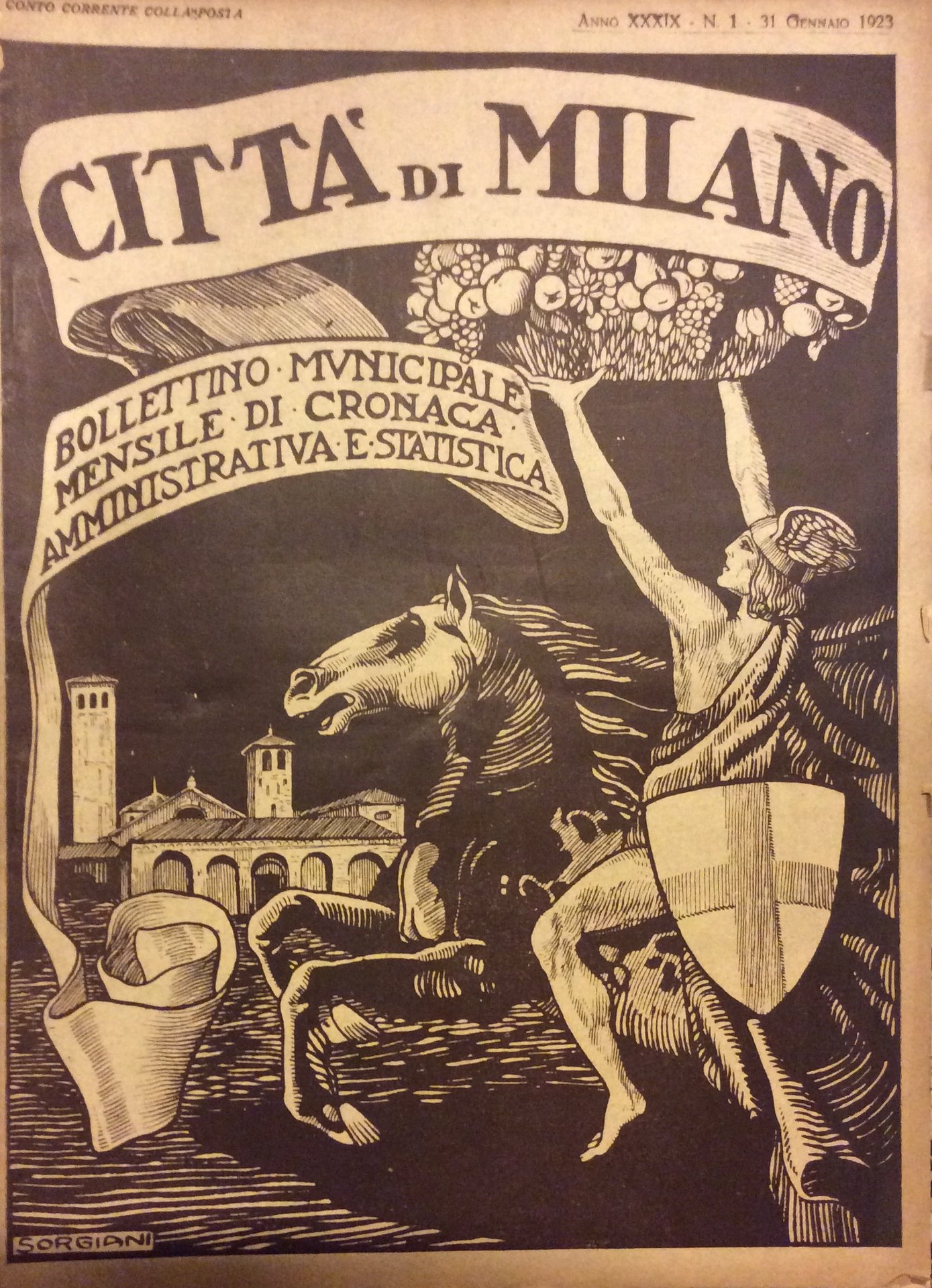 In-8 grande, brossura. Di questa bella rivista mensile pubblicata dal Comune di Milano, prima come Citta' di Milano e poi, dal 1928 come Milano - Rivista mensile del Comune di Milano, offriamo l'annata completa del 1923. In buono stato (good copy).