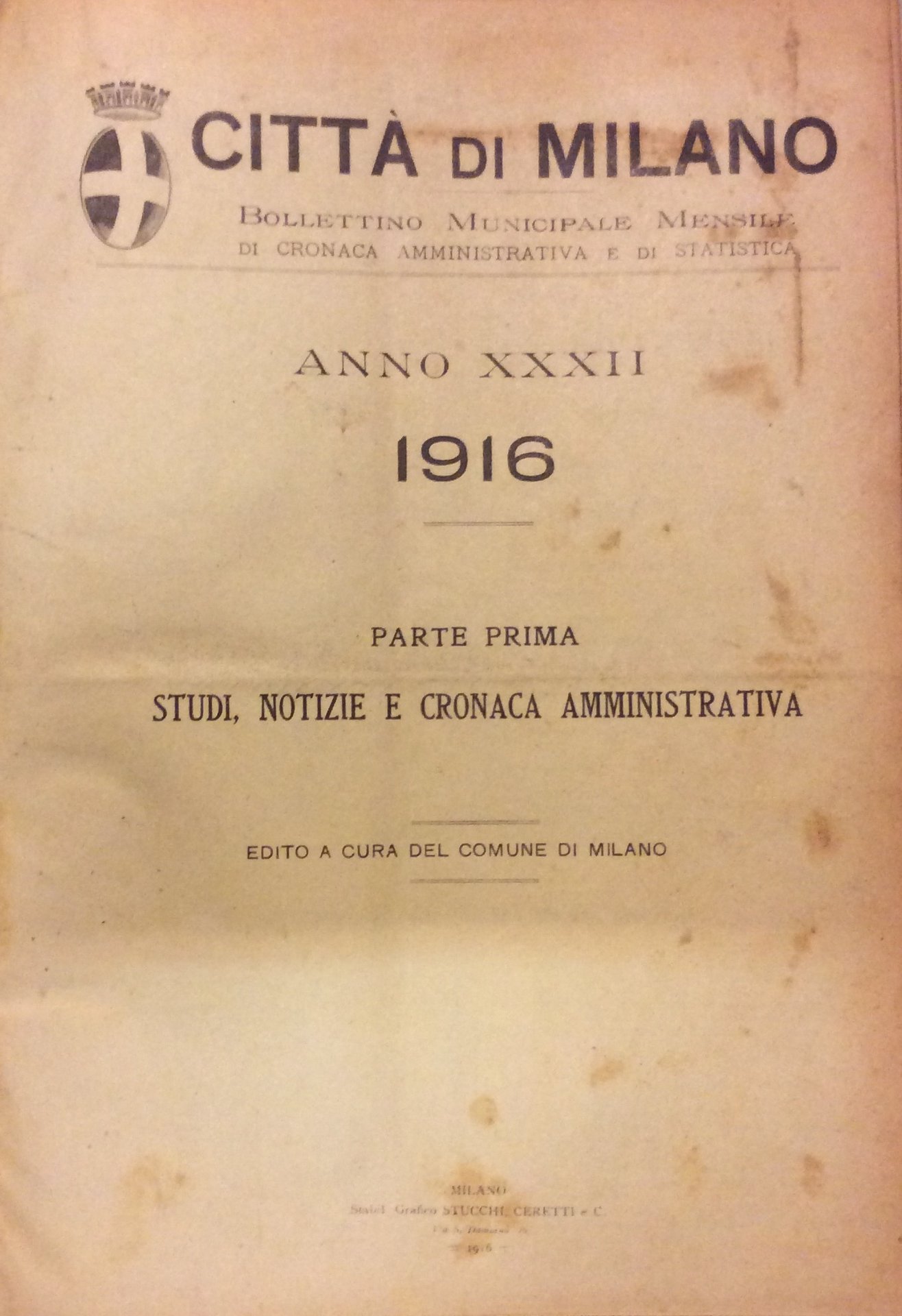 CITTA' DI MILANO. - Bollettino Municipale. Mensile di cronaca amministrativa e statistica.