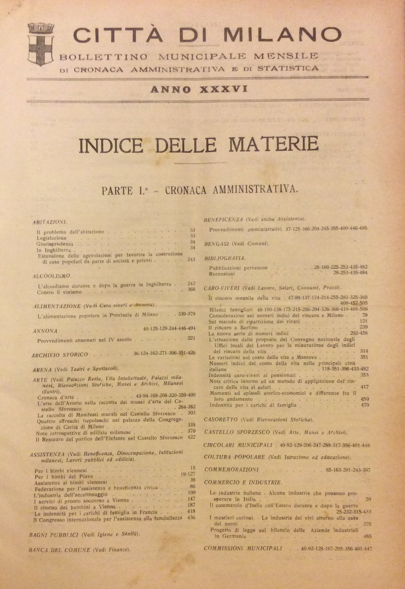 CITTA' DI MILANO. - Bollettino Municipale. Mensile di cronaca amministrativa e statistica.