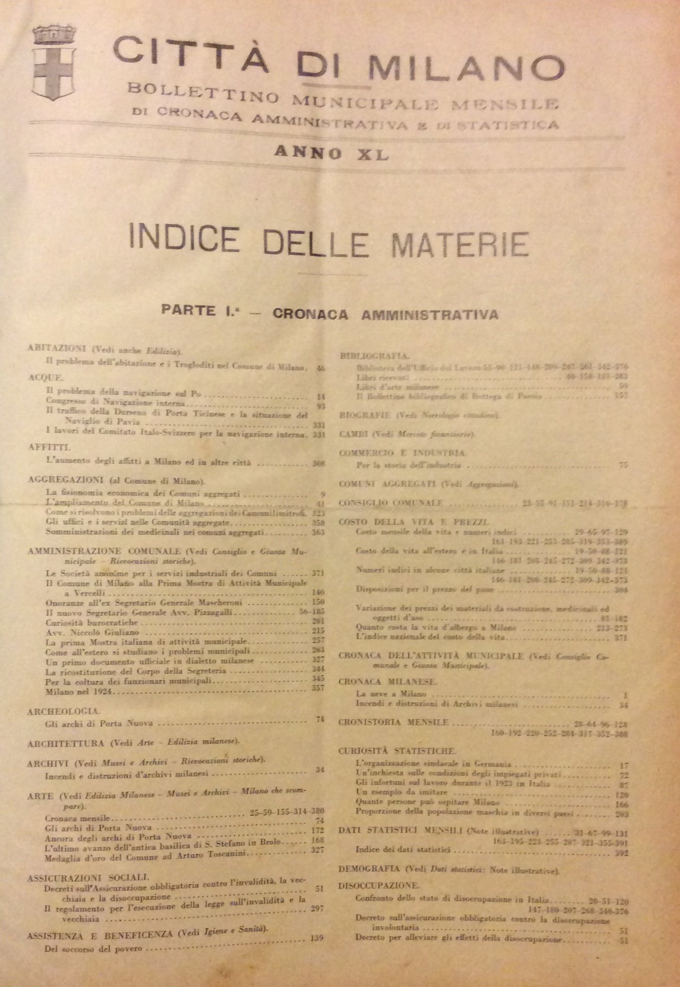 CITTA' DI MILANO. - Bollettino Municipale. Mensile di cronaca amministrativa e statistica.
