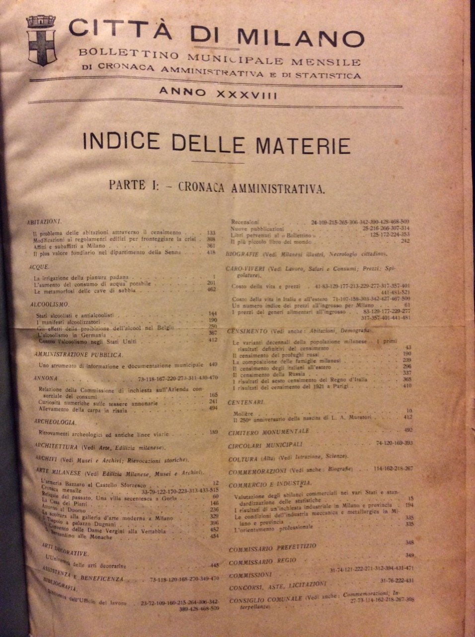 CITTA' DI MILANO. - Bollettino Municipale. Mensile di cronaca amministrativa e statistica.