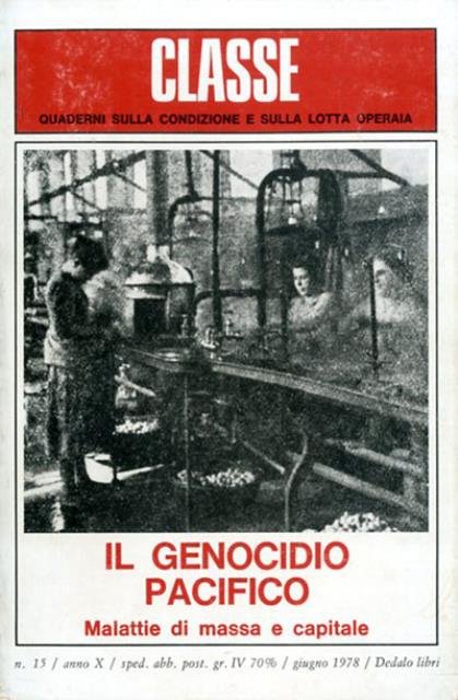 222 p. ; 21 x 14 cm. La rivista «Classe» fondata da Stefano Merli aveva come principale scopo quello di contribuire, nel campo della ricerca storico-teorica, alla ricostruzione di una strategia unitaria del movimento operaio. Merli, storico e militante socialista, cercò a lungo di dare consapevolezza e spessore storico-critico a quel tentativo di rinnovamento dal basso della storiografia del movimento operaio italiano che sull’onda della crisi del 1956 aveva trovato le sue più significative espressioni culturali nell’operaismo marxista di Raniero Panzieri e nella riscoperta dell’“altra storia” di Bosio e Montaldi. Il primo numero della rivista esce nel giugno 1969 e l'ultimo, n. 22, nel dicembre 1982. Numeri monografici: 15. Il genocidio pacifico. Malattie di massa e capitale. Brossura editoriale, coperta illustrata in cartoncino flessibile colorato (b/n e rosso) e plastificato. Qualche leggero segno del tempo, ingiallimento della carta e qualche fioritura per il resto esemplare integro. Codice libreria 8207.