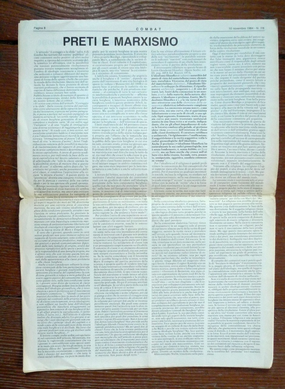 COMBAT ANNO I - N.7/8 OTTOBRE-NOVEMBRE 1984.PER IL PARTITO COMUNISTA INTERNAZIONALE.Mensile.44x32 cm., pp.8,illustrazioni in bianco e nero,peso: g.300cod.10027CONDIZIONI DEL PERIODICO: buone,piega centrale,strappetti e brunitura in corrispondenzadella piega