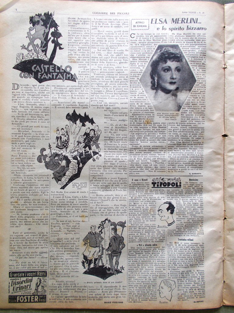 Corriere dei Piccoli 30 Novembre 1941 Elsa Merlini Fantasma Francobolli Vaselina