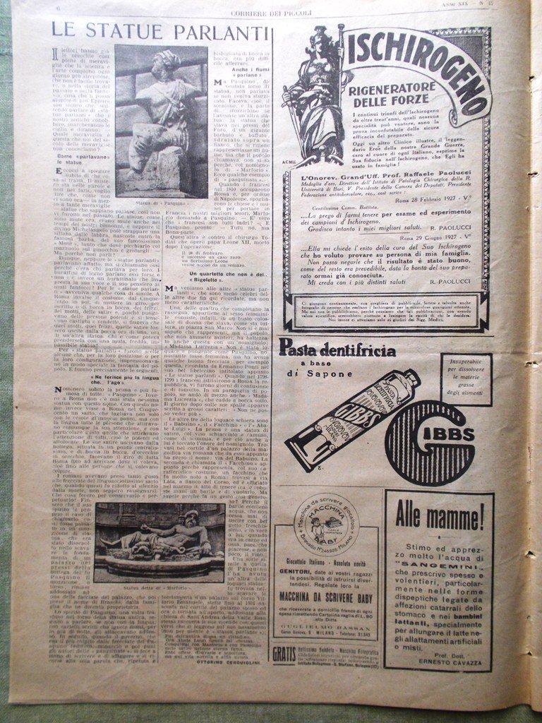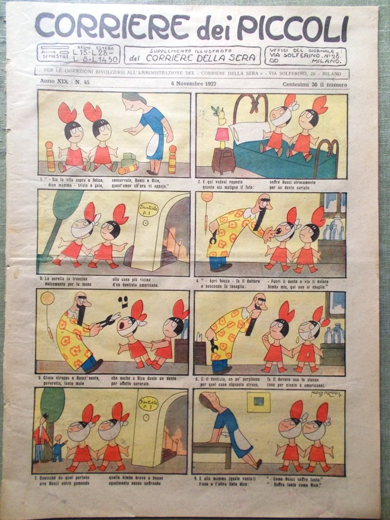 Corriere dei Piccoli 6 Novembre 1927 Precocità Statue Bauci Bice Pompeo Alfonso