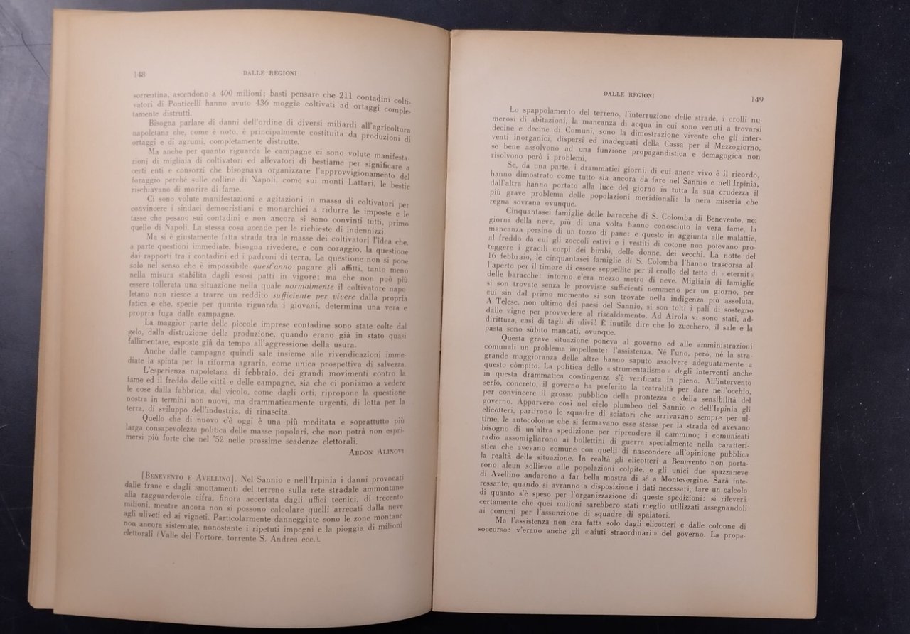 Gaetano Macchiaroli Editore, 1956. 78 pagine (numerazione da 113 a 190). Copertina editoriale in brossura. Stato di conservazione: buono (pagine ingiallite, una piccola sottolineatura a matita colorata) Libro usato saggistica politica storia locale