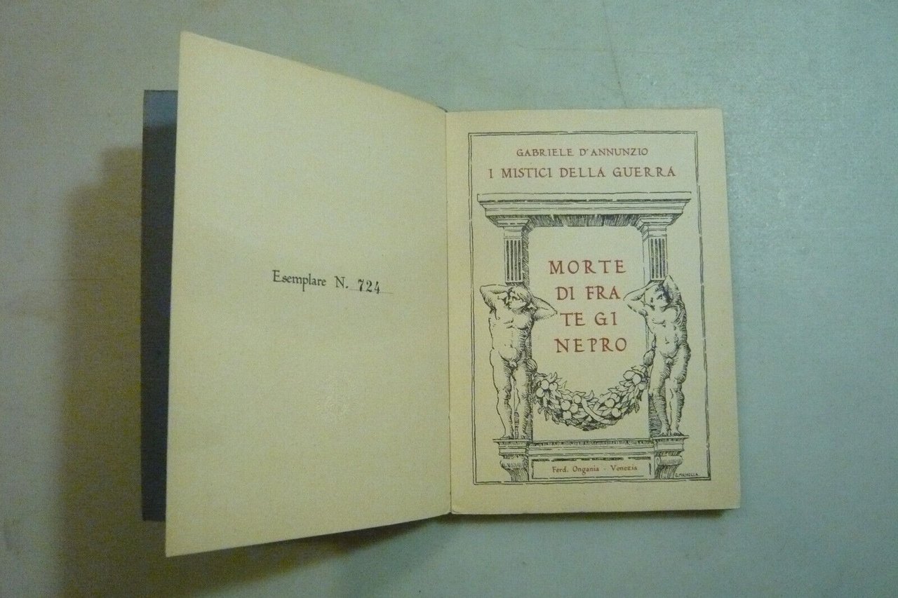 d’Annunzio,I MISTICI DELLA GUERRA.Morte di Fra Ginepro,Ongania,Venezia 1948
