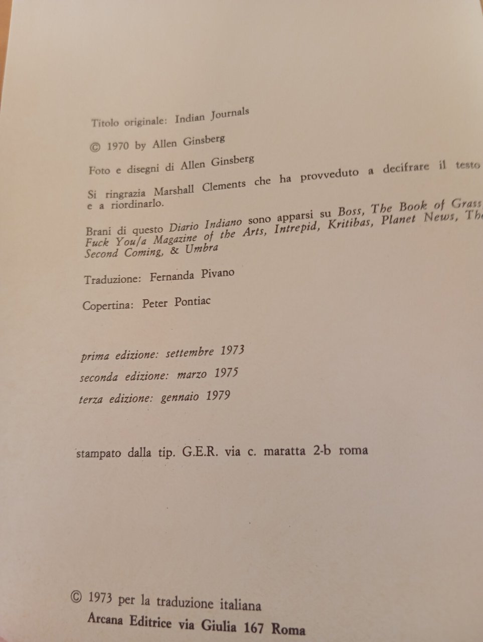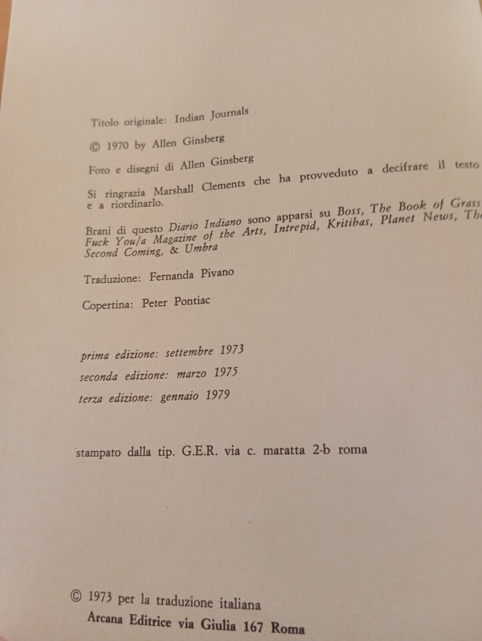 Diario indiano, Allen Ginsberg, Arcana editrice, A cura di Fernanda Pivano, 1979