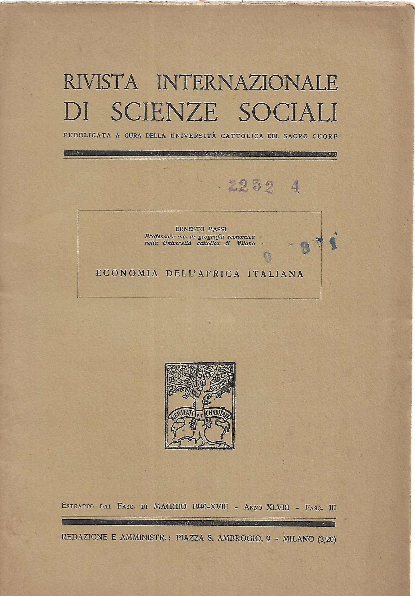 ESTRATTO dal fascicolo di Maggio 1940-XVIII della Rivista Internazionale di Scienze Sociali pubblicata dalla Università Cattolica del Sacro Cuore di Milano