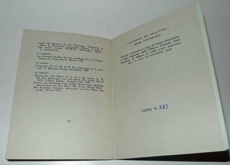 Ezra Pound,CANTO 98,1958 ed.num.all'Insegna del Pesce d'Oro[poesia,Scheiwiller