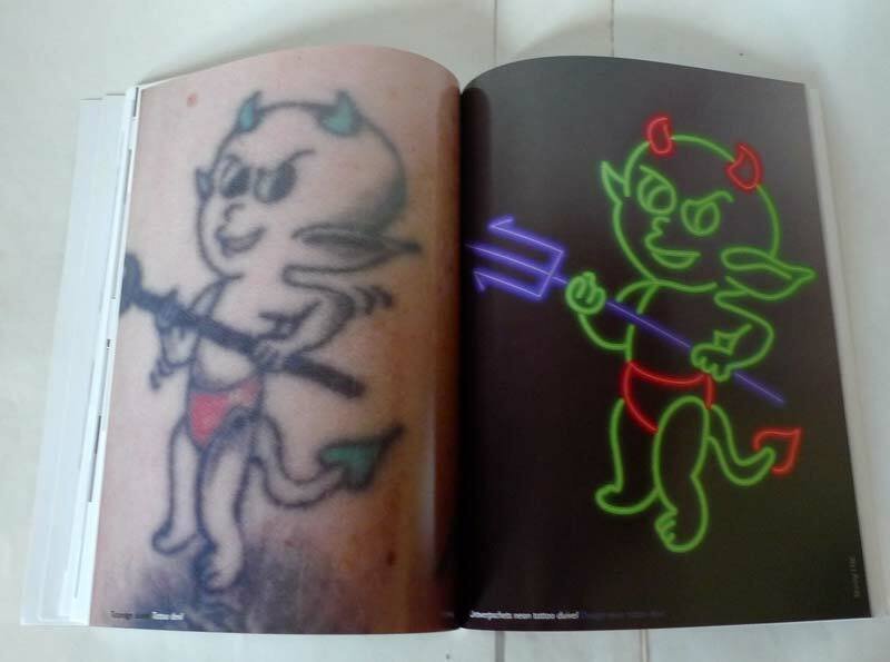 The neon pieces are based on the tattoos of the residents and at the same time have a symbolic meaning: