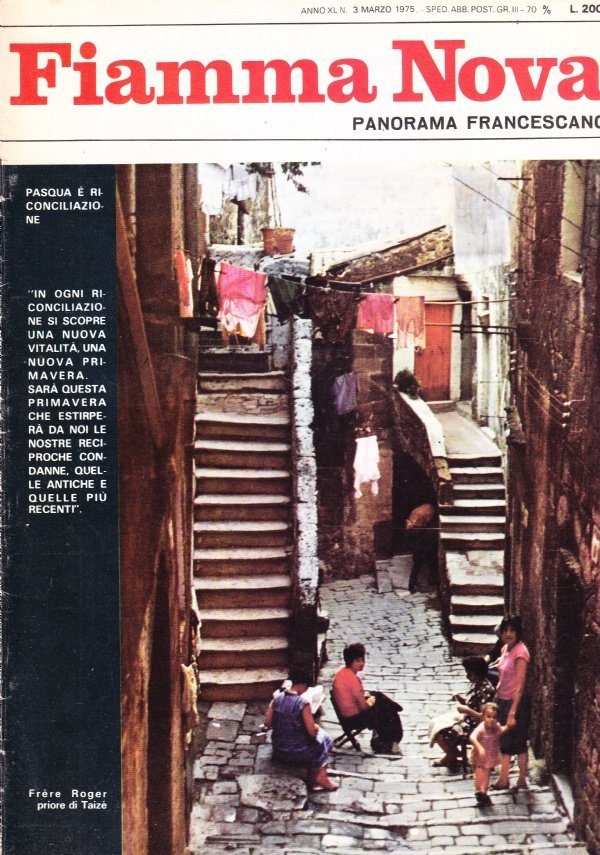 31 pagine. Ill. b/n. Spillato. BUONE CONDIZIONI. Sommario: Dialogo con i lettori; Con la Chiesa (La parola del Papa; Cronache dell'Anno Santo); Pietro è qui; L'anticlericale; Momento biblico; I Due (poesia); Fiamma Guisa (La voce di Frate Francesco: il focolare della pietà); La divina conversazione; Anno Santo: Riconciliazione; S. Francesco Uomo libero; Fiamma Giovani (La gioventù di Gesù; La nostra gioia; L'olivo di pace); Il priore di Taizé ai giovani; Non fabbricate armi-giocattolo; Una domanda obbligatoria; L'uomo e i suoi problemi. La vita del bambino fino dal primo momento non è un'opinione; Obelisco; Crocevia della gente poverella; Biblioteca