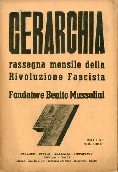 Gerarchia, a. XVI, n. 2 (febbraio 1936). Rassegna mensile della rivoluzione fascista. Fondatore Benito Mussolini.
