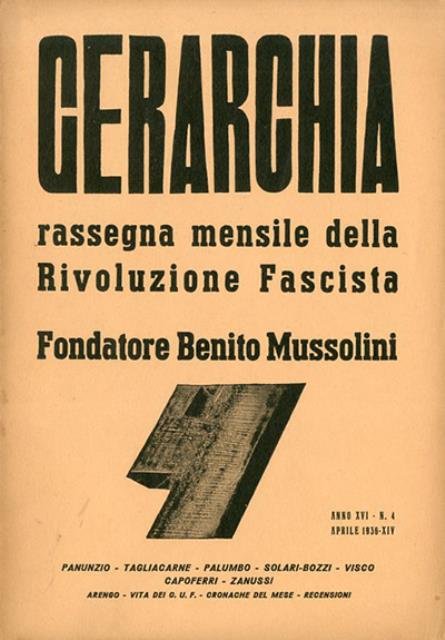 Gerarchia, a. XVI, n. 4 (aprile 1936). Rassegna mensile della rivoluzione fascista. Fondatore Benito Mussolini.