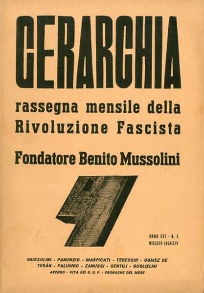 Gerarchia, a. XVI, n. 5 (maggio 1936). Rassegna mensile della rivoluzione fascista. Fondatore Benito Mussolini.