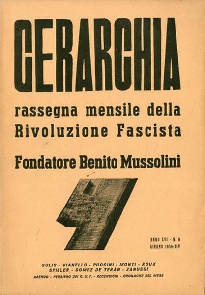 Gerarchia, a. XVI, n. 6 (giugno 1936). Rassegna mensile della rivoluzione fascista. Fondatore Benito Mussolini.
