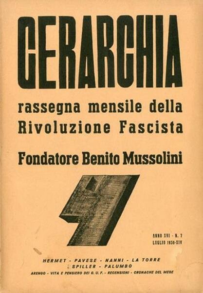 Gerarchia, a. XVI, n. 7 (luglio 1936). Rassegna mensile della rivoluzione fascista. Fondatore Benito Mussolini.