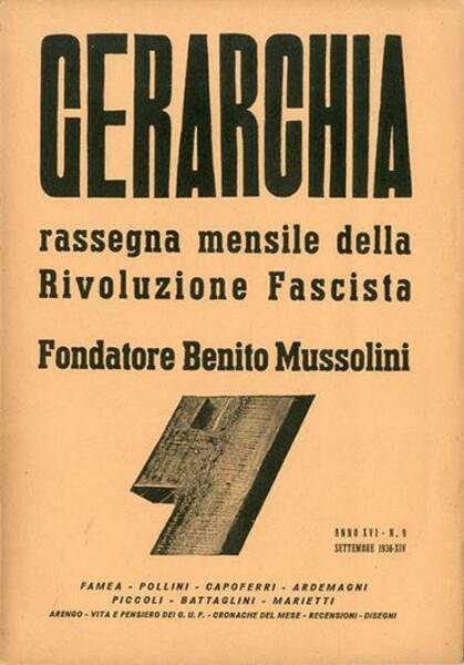 Gerarchia, a. XVI, n. 9 (settembre 1936). Rassegna mensile della rivoluzione fascista. Fondatore Benito Mussolini.
