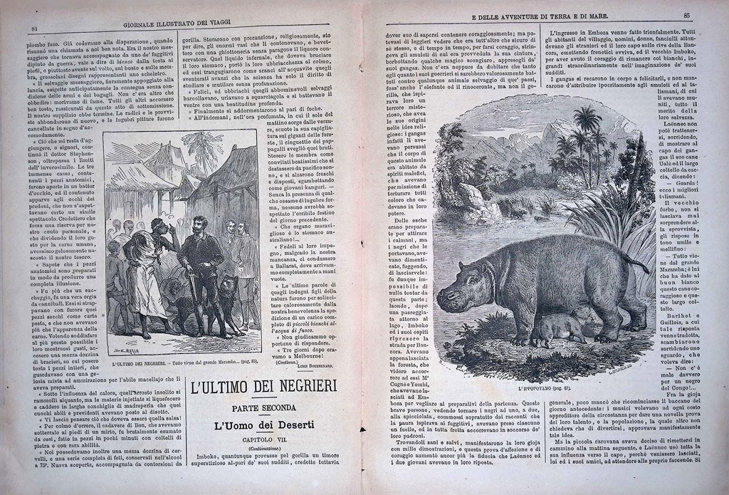 Notizie e varietà: l'ippopotamo, il traffico degli schiavi, un'ascensione in Asia, un naufragio cinese nelle montagne della Sierra Nevada