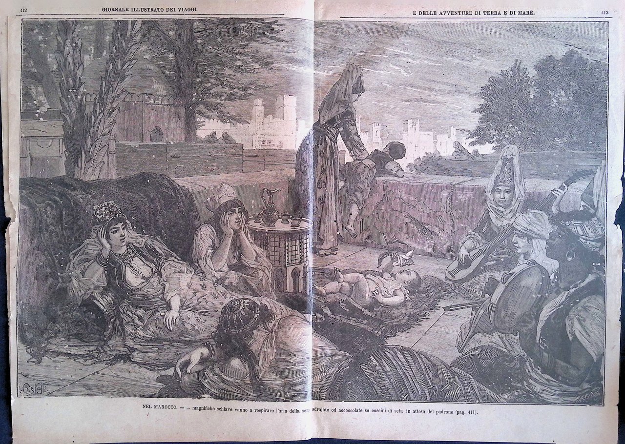 Giornale Illustrato dei Viaggi 27 Agosto 1885 Costumi in Marocco Tesoro Re Cafri