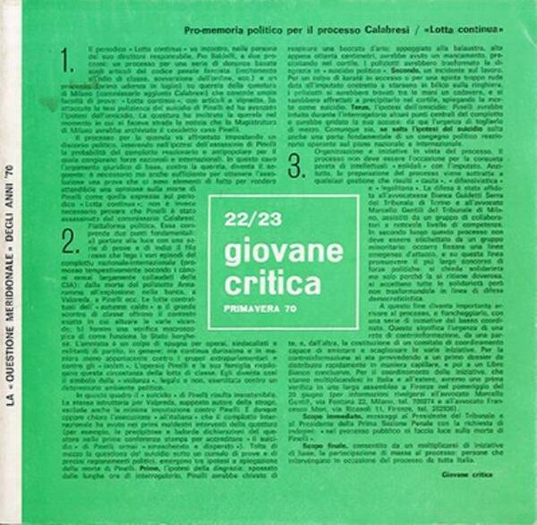 Giovane critica, numero 22/23 primavera 1970.