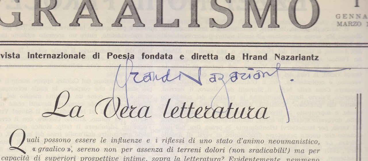 GRAALISMO rivista internazionale di poesia fondata e diretta da Hrand Nazariantz.