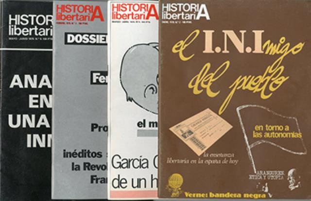 4 fasc. ; 27 x 21 cm. Periodico dedicato alla storia dell'anarchismo uscito a Madrid (Spagna) tra il 1978 e il 1979 [N. 1 (nov.-dic. 1978)-n. 6 (dic. 1979)]. N. 2 (enero 1979); n. 3 (febrero 1979); n. 4 (marzo-abril 1979); n. 5 (mayo-junio 1979). 4 fascicoli spillati di 74 pagine i primi tre e 66 l'ultimo, copertina illustrata a colori su carta patinata lucida, all'interno numerose illustrazioni in b/n. Codice libreria 6865.